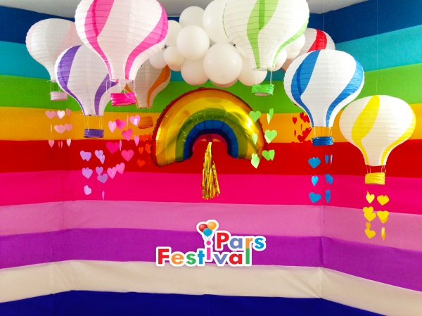 نمونه ای بسیار زیبا از دکوراسیون بالن های کاغذی و تم رنگین کمان